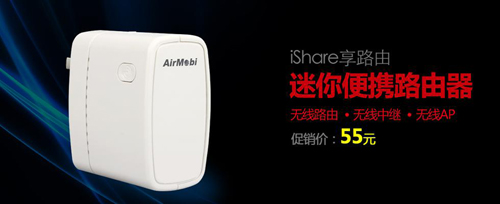 AirMobi便攜式無(wú)線路由器iShare限時(shí)僅售55元